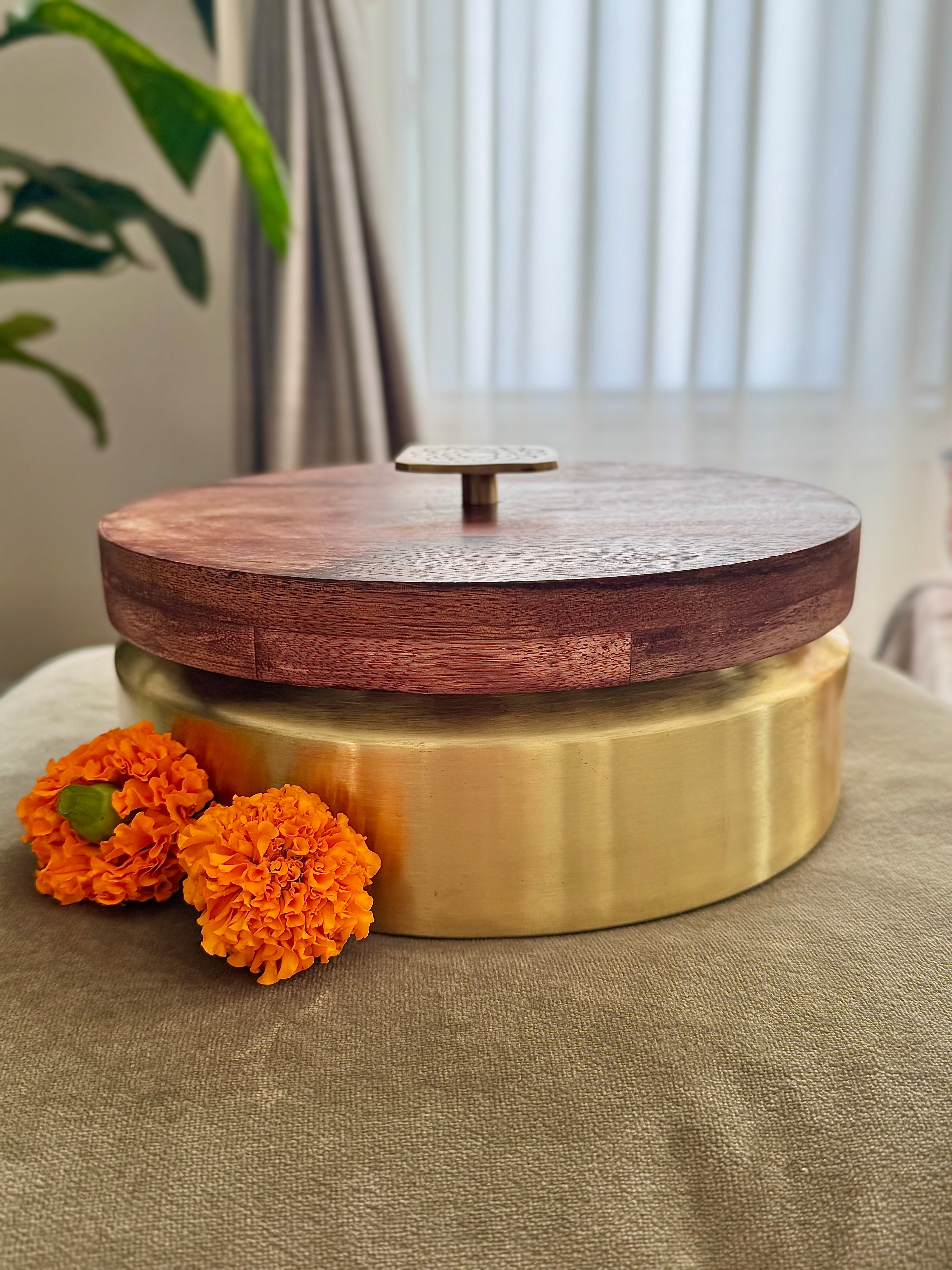 Partnering with skilled artisans across India, we blend original digital artwork with traditional craftsmanship — transforming sustainable mango wood, brass, and enamel into functional art. Every platter, bowl, and roti box tells a story of culture, craftsmanship, and connection.