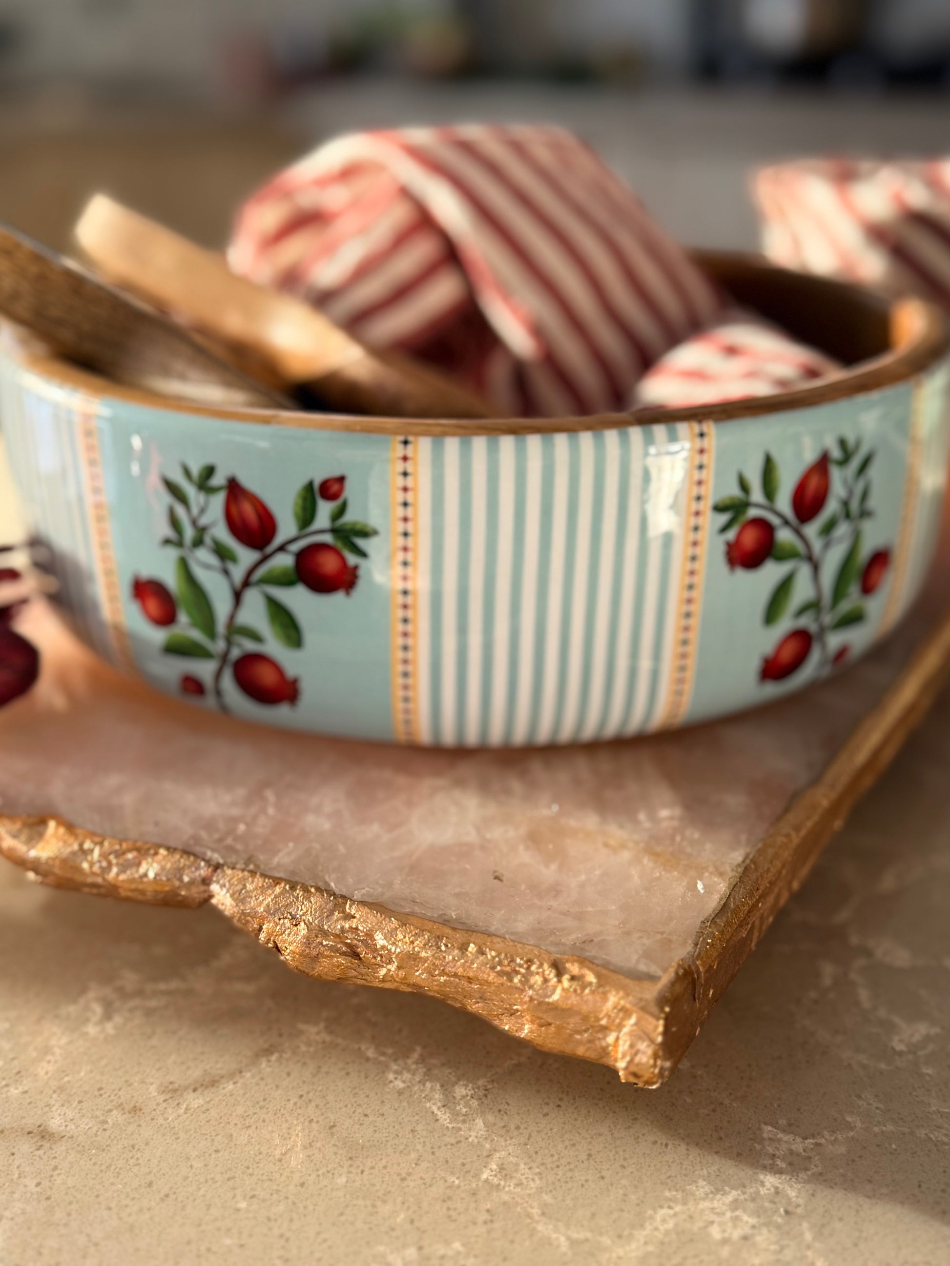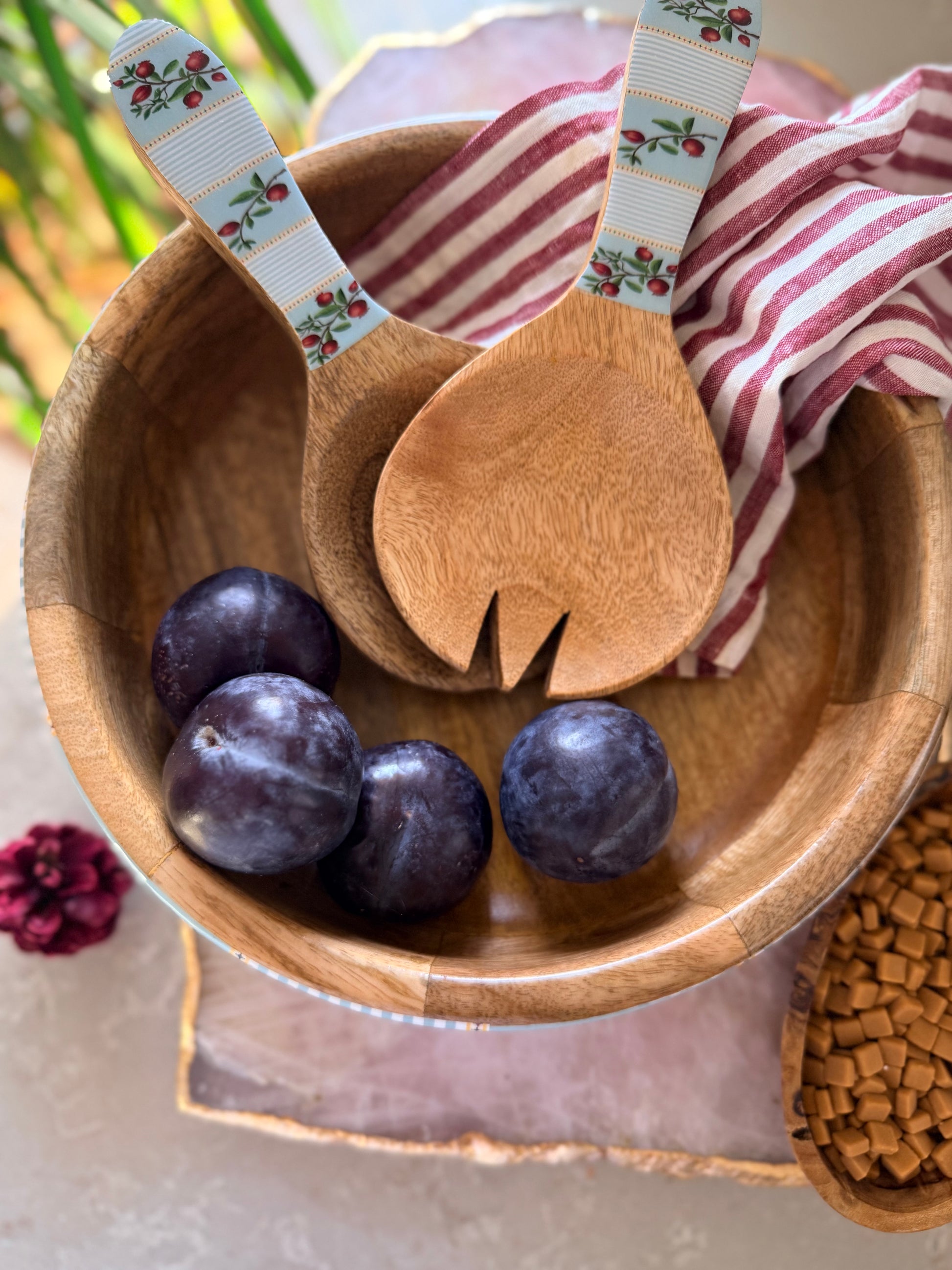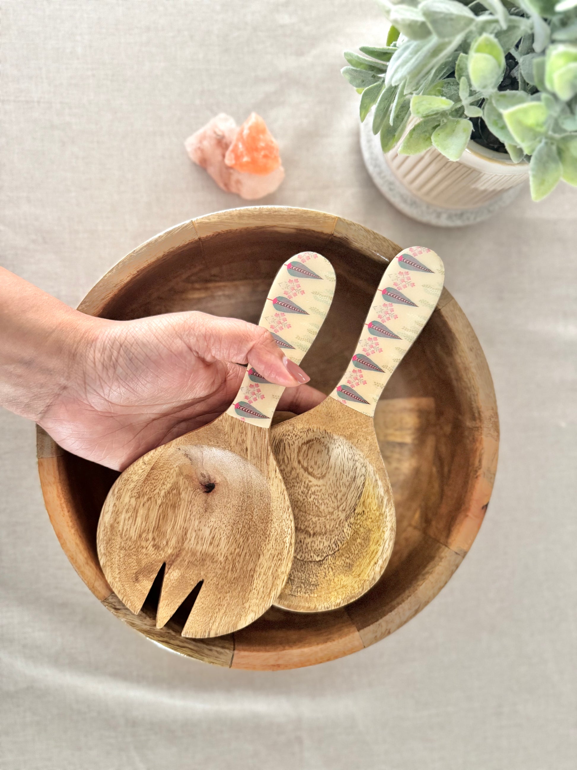 The Prithvi Salad Bowl celebrates the warmth of mango wood and the elegance of art. Each bowl carries our proprietary in-house digital design printed using food-safe enamel, making it a unique blend of sustainability and style.